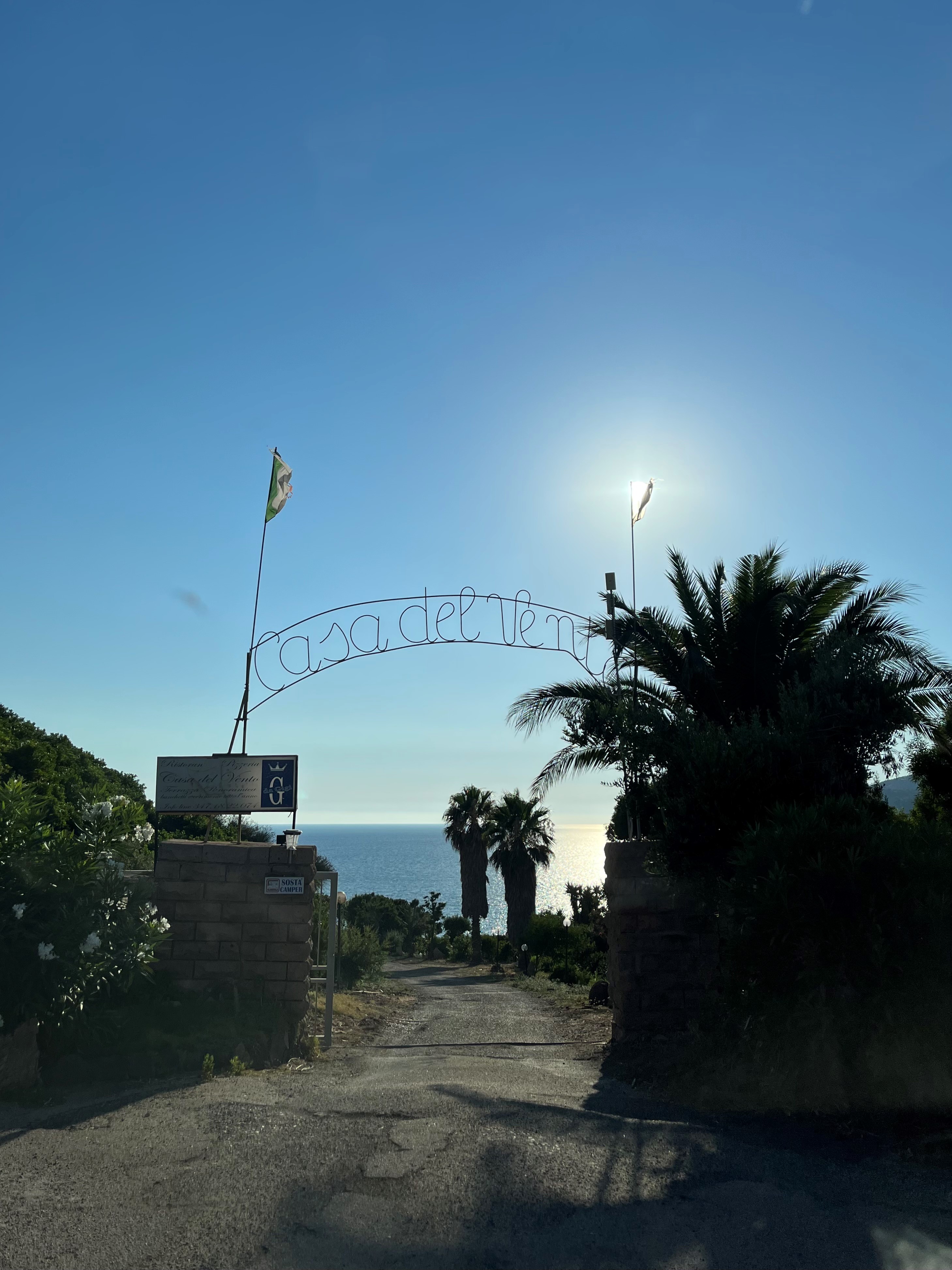 Der Stellplatz beim Casa del Vento ist ein sehr empfehlenswerter Platz. Für eine Nacht betragen die Kosten 10 Euro. Es befinden sich zwei Duschen draussen, die benutzt werden dürfen. Eine Toilette befindet sich beim Restaurant, welches gerade nebendran ist. Das Restaurant verfügt über eine wunderschöne Terrasse mit einer atemberaubenden Sicht. Bei Sonnenuntergang ist die Stimmung dort magisch. Der Stellplatz befindet sich auf Felsen. Deshalb gibt es dort auch kein Sandstrand, doch schwimmen kann man in den Felsen trotzdem.