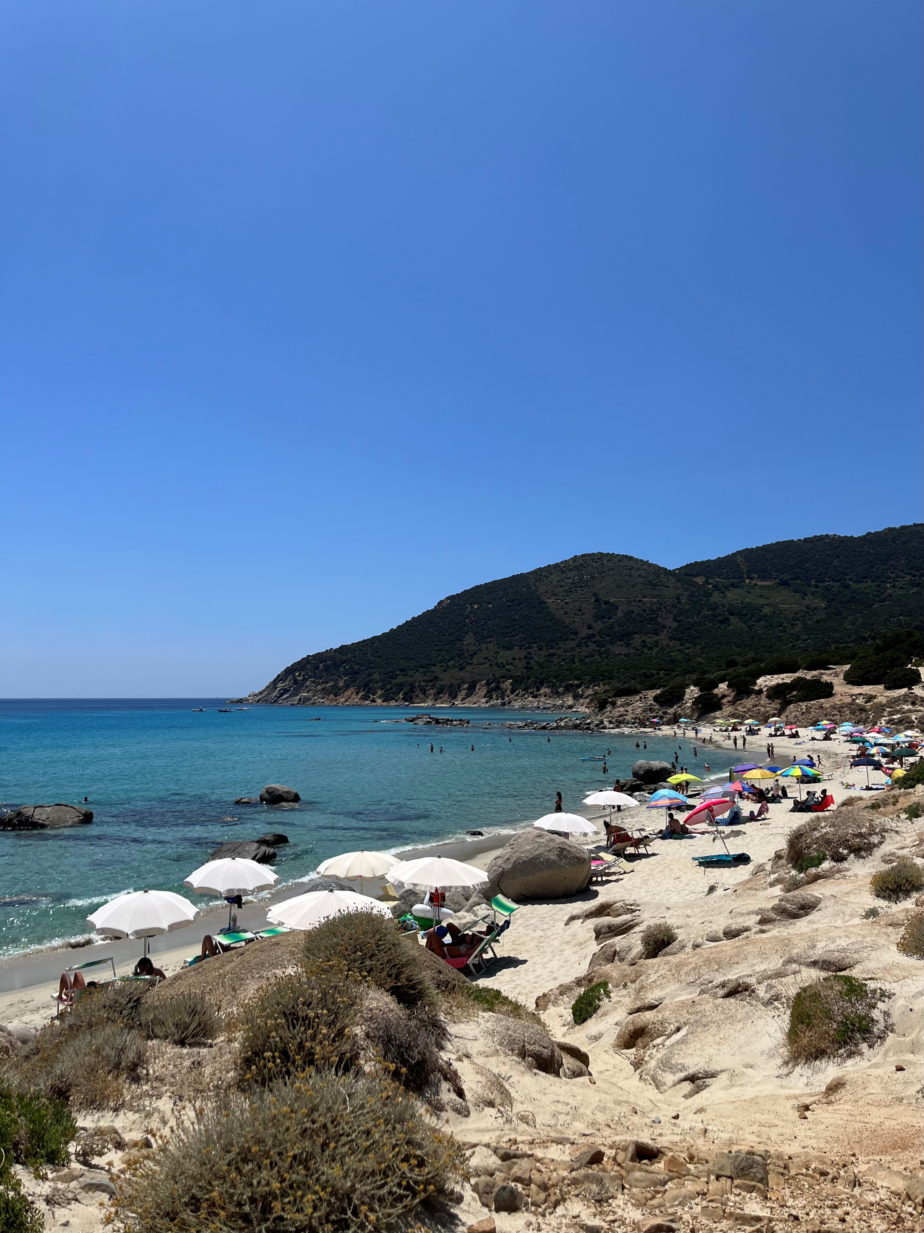 Der Strand Porto Sa Ruxi ist der erste Strandabschnitt nach Villasimius Richtung Cagliari. Von der Küstenstrasse führt ein Weg zu einem gebührenpflichtigen Parkplatz. Von dort aus geht es zu Fuss zum Strandabschnitt durch alte Wachholderbäume und Sanddünen. Die Bucht ist in drei Abschnitte unterteilt. Das Meer leuchtet schon von weitem mit seinem glasklaren, blauen Wasser und dem feinen hellen Sand. Im Wasser befinden sich Felsen, von dort kann ins saubere Wasser gesprungen werden oder wer gerne schnorchelt, ist dort genau richtig. Unter den Bäumen befindet sich ein kleines feines Restaurant, wo mittags ein leckeres traditionelles Mittagessen eingenommen werden kann oder ein Apéritivo genossen werden kann. Grundsätzlich ist in den Sommermonaten der Strand voll, vor allem auch sonntags, wo es die Einheimischen zur Abkühlung ans Meer zieht.