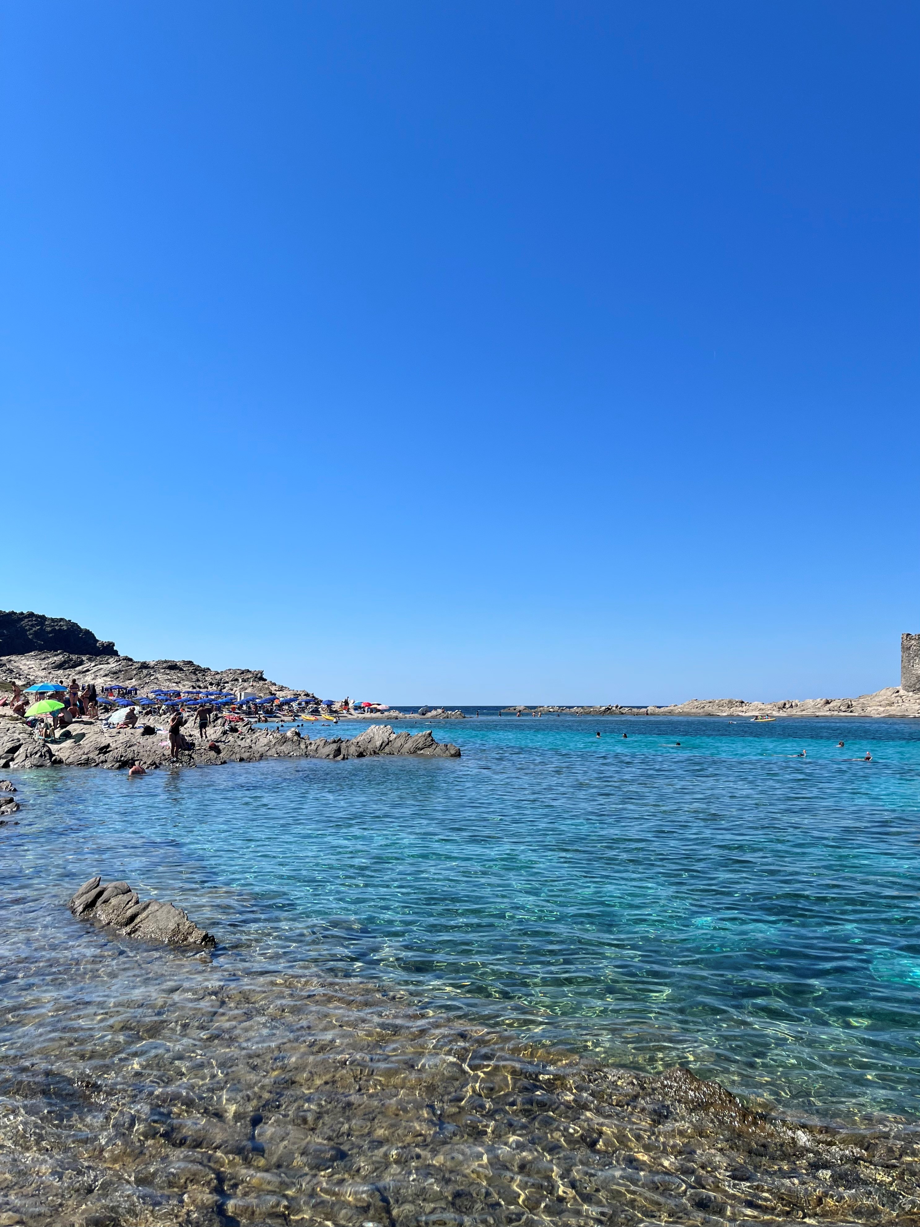 Die Farben im Wasser sind unglaublich an diesem Strand. Es gibt einen Teil, der einen Sandstrand hat und es gibt einen Teil, der Steine und Felsen hat. Es geht sehr flach ins Wasser und ist somit super geeignet für Kinder. Ganz nahe gibt eine kleine Insel, zu der man schwimmen kann. Dort steht ein Steinturm, der früher als Verteidigung genutzt wurde. Wer möchte, kann auf die Insel gehen (gratis) und den Turm anschauen. Leider gibt es viele Touristen an diesem Strand, deshalb lohnt es sich auf jeden Fall, früh aufzustehen.